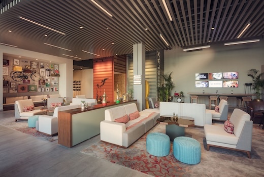 The lobby was busy and colorful (although, to be honest the couches did not look comfortable at all!)